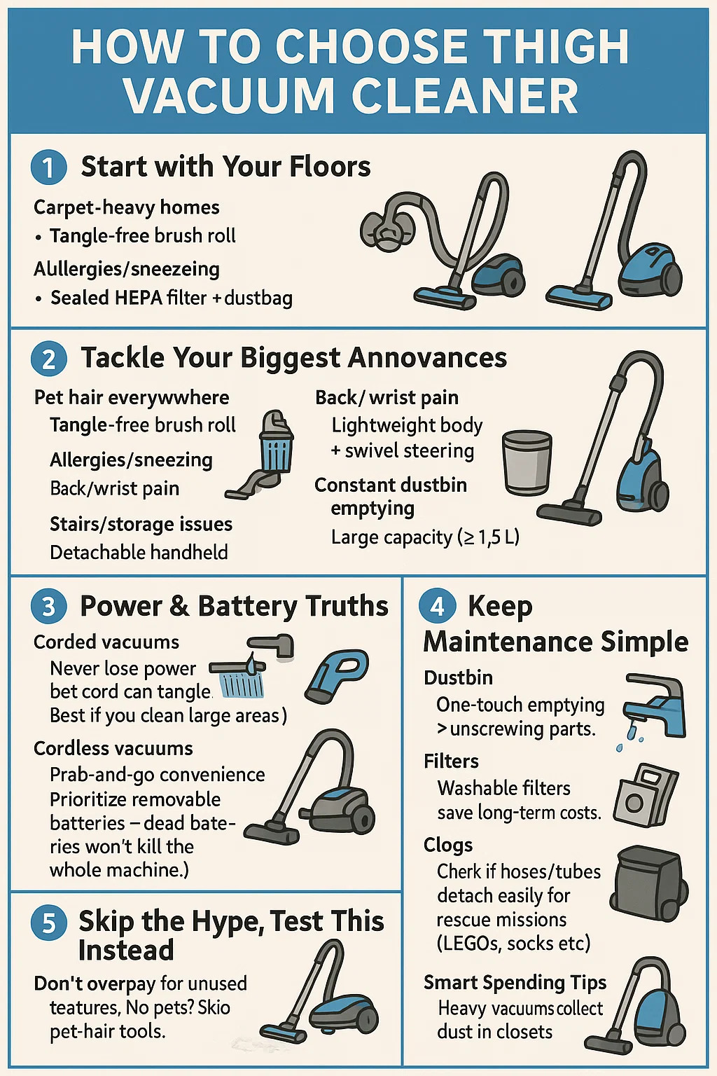Narito ang isang tuwid na gabay sa pagpili ng tama Mas malinis ang vacuum Para sa iyong tahanan, gamit ang pang -araw -araw na wika: